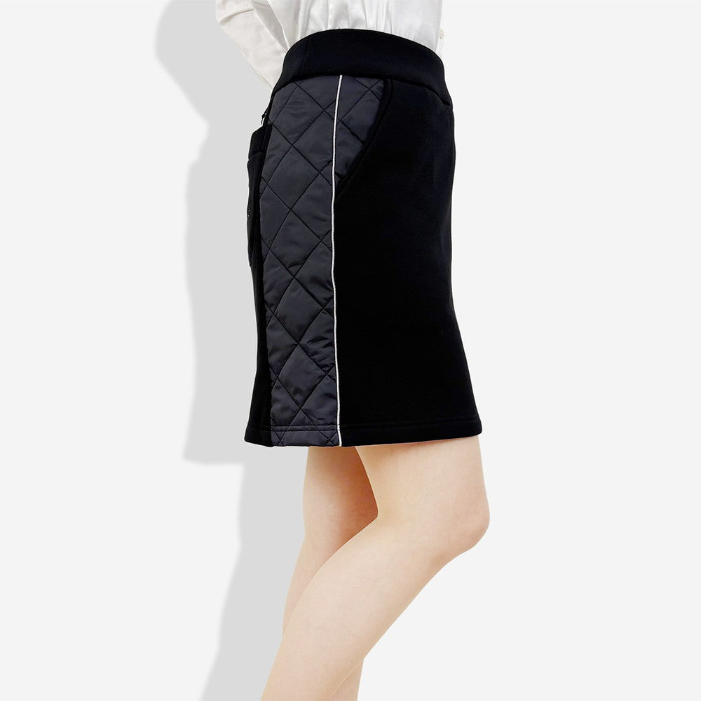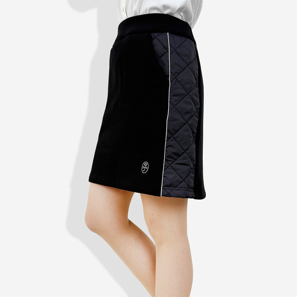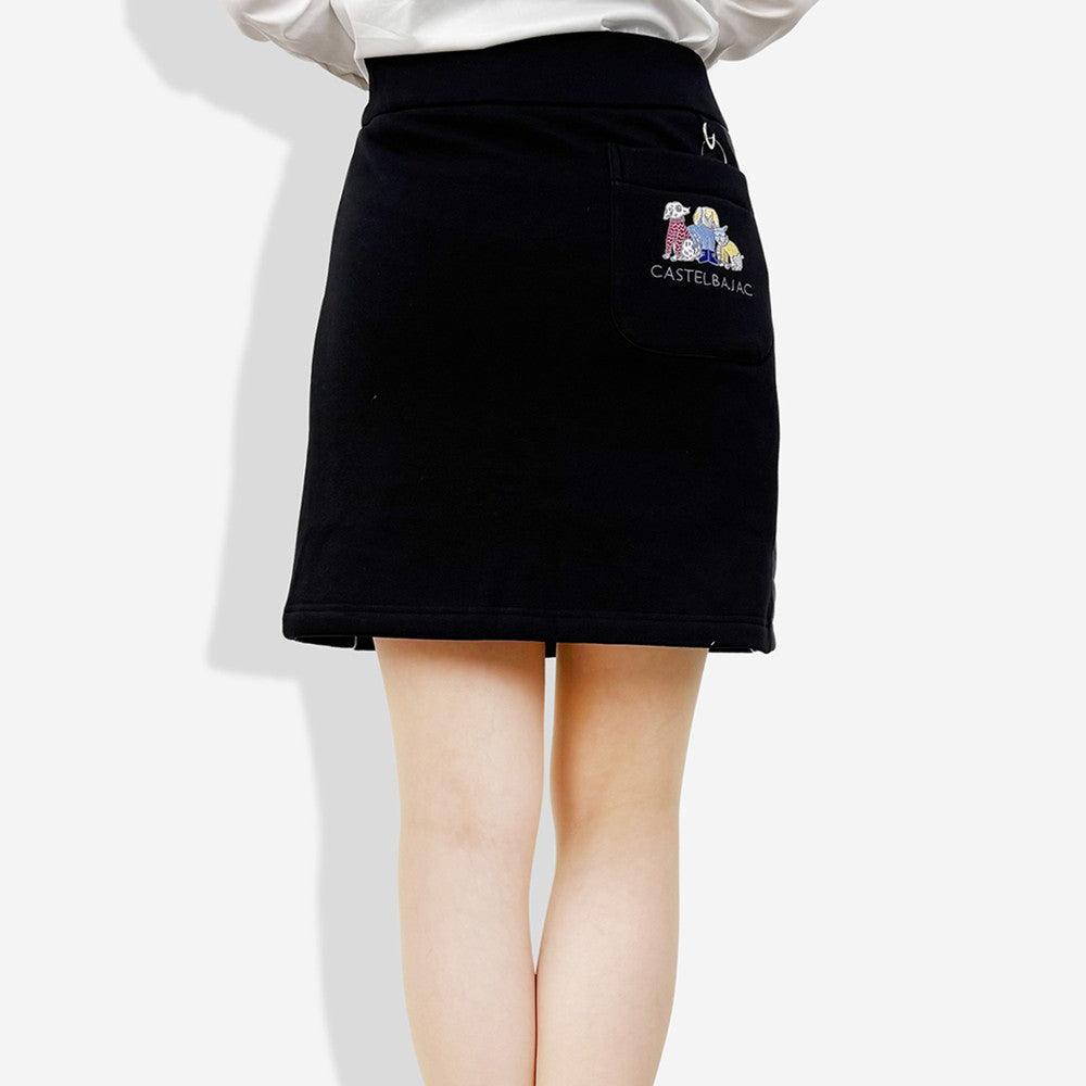 スカート 保温素材 裏起毛 サイド中綿キルトディテール 裏地付き dog刺繍 異素材切替デザイン ゴルフウェア