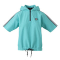パーカー 半袖 フード付き ハーフジップ ワッフル素材 プルオーバー ラインメッシュテープデザイン 軽量 高通気 ロゴシリコンワッペン