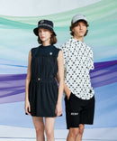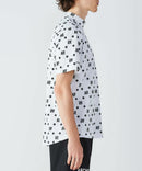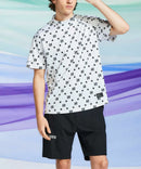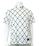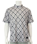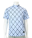 高脖子衬衫,短袖,模拟脖子衬衫,拉伸,紫外线保护,晶格图案样式,徽标X星图案,全部打印