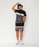高脖子衬衫,短袖,模拟脖子衬衫,华夫饼面料,光滑的材料开关,头巾打印图案,徽标贴片,高尔夫磨损