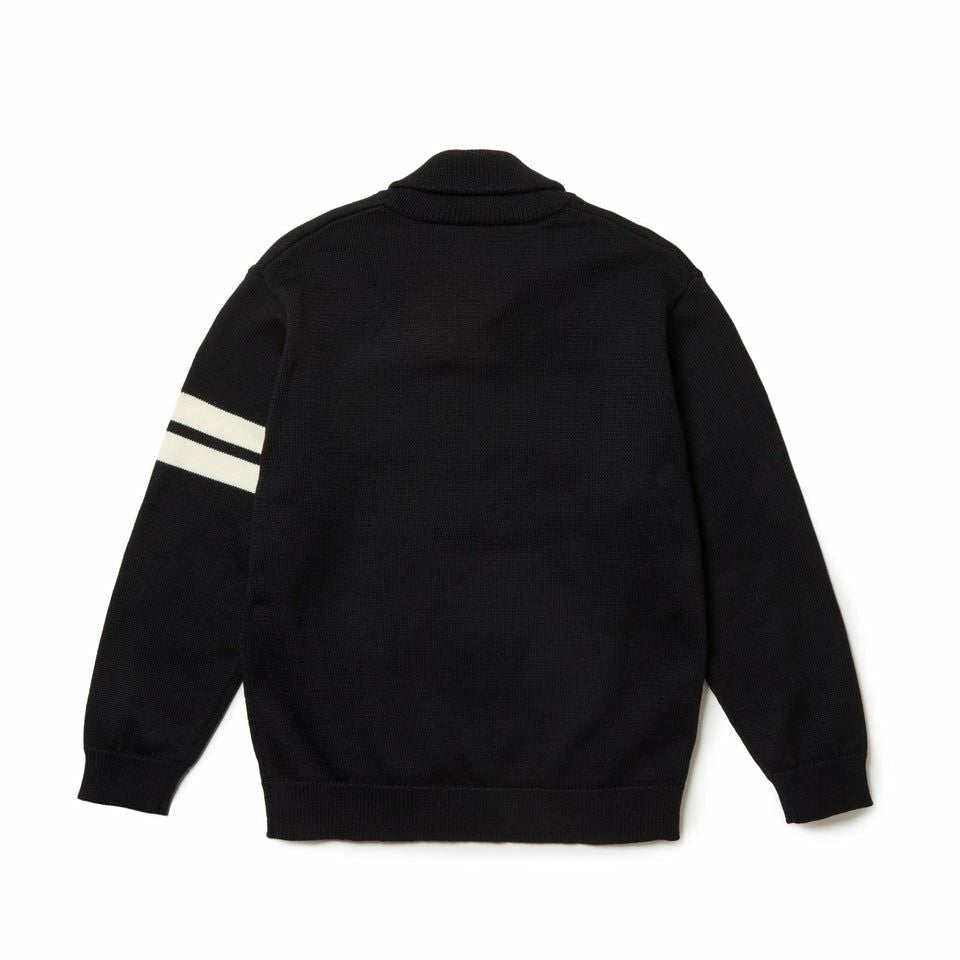 毛衣披肩领针织可手洗 Sagara 徽标贴片袖子彩色线条设计低规格针织 M~3L 高尔夫服装