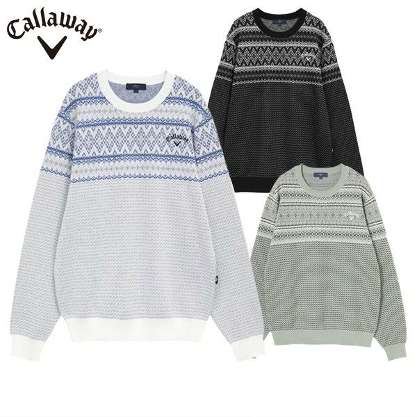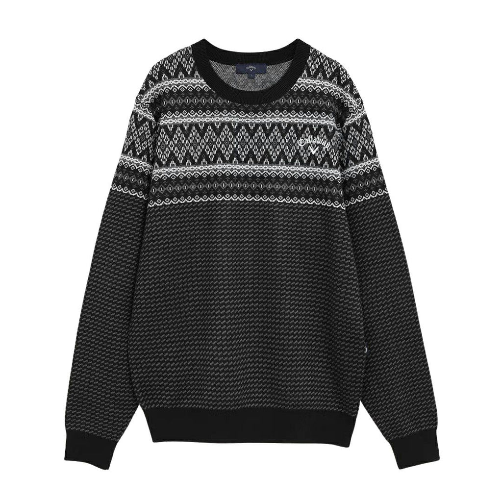 毛衣 圆领针织套头衫 北欧图案 全身设计 徽标刺绣 高尔夫服装