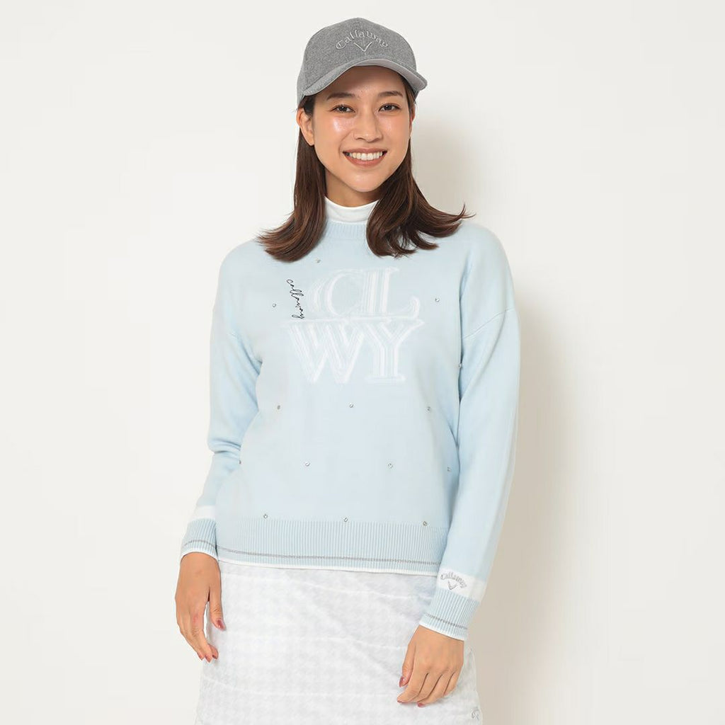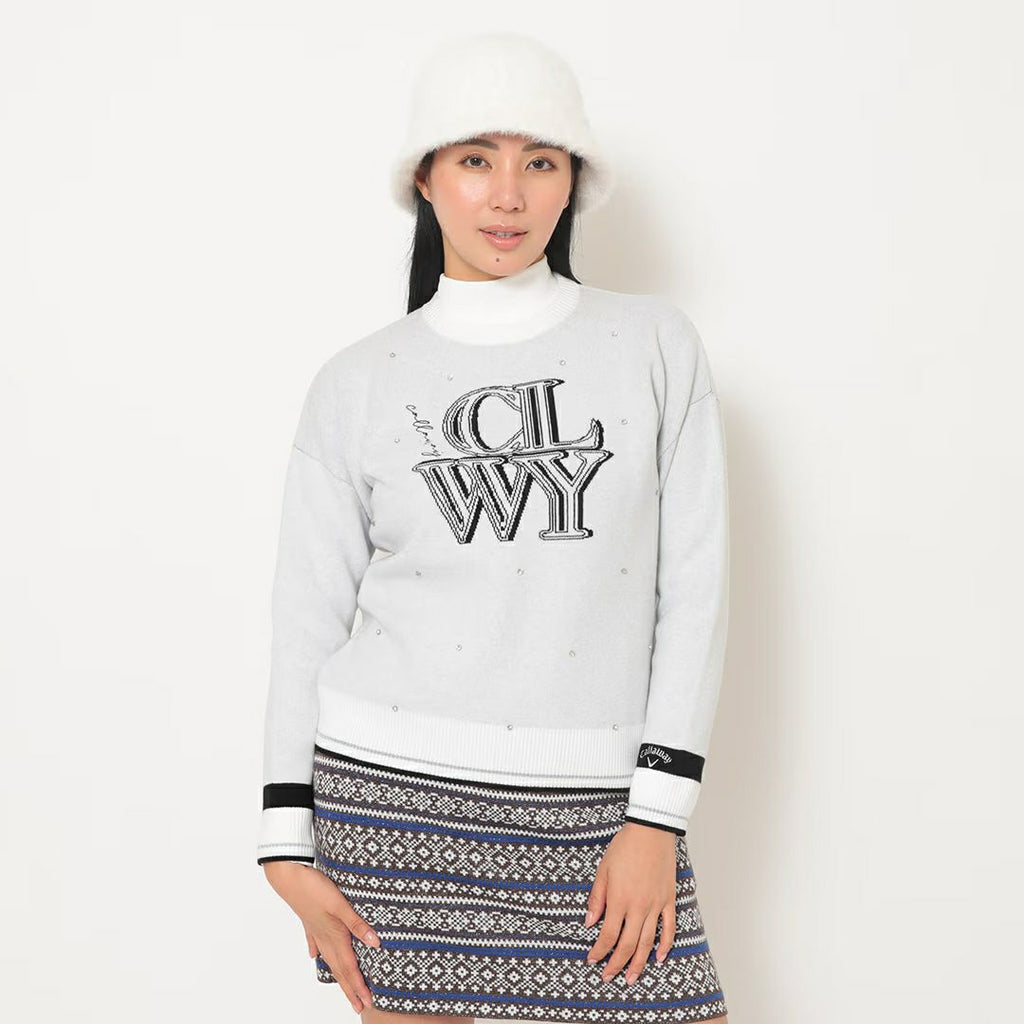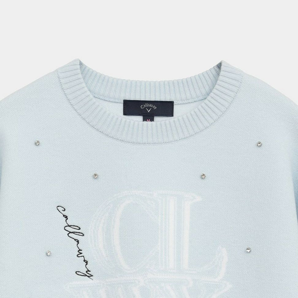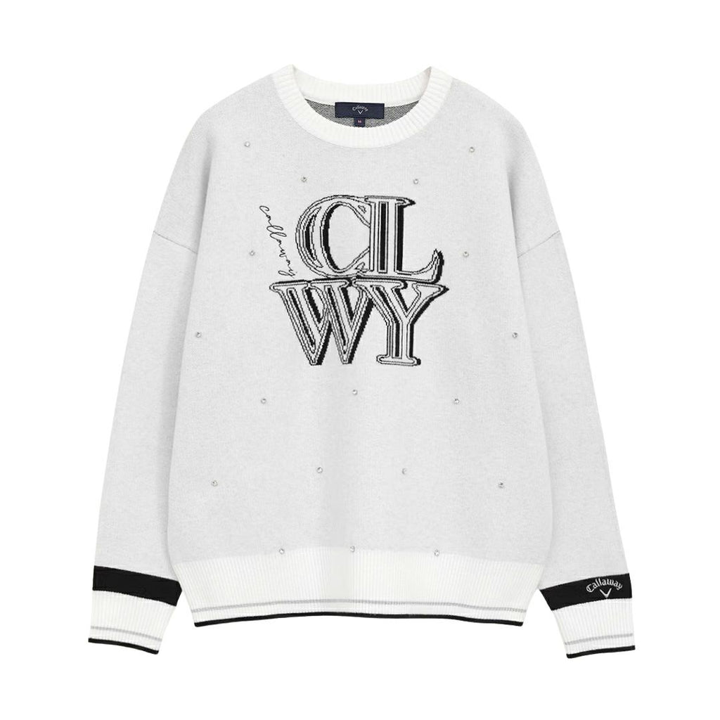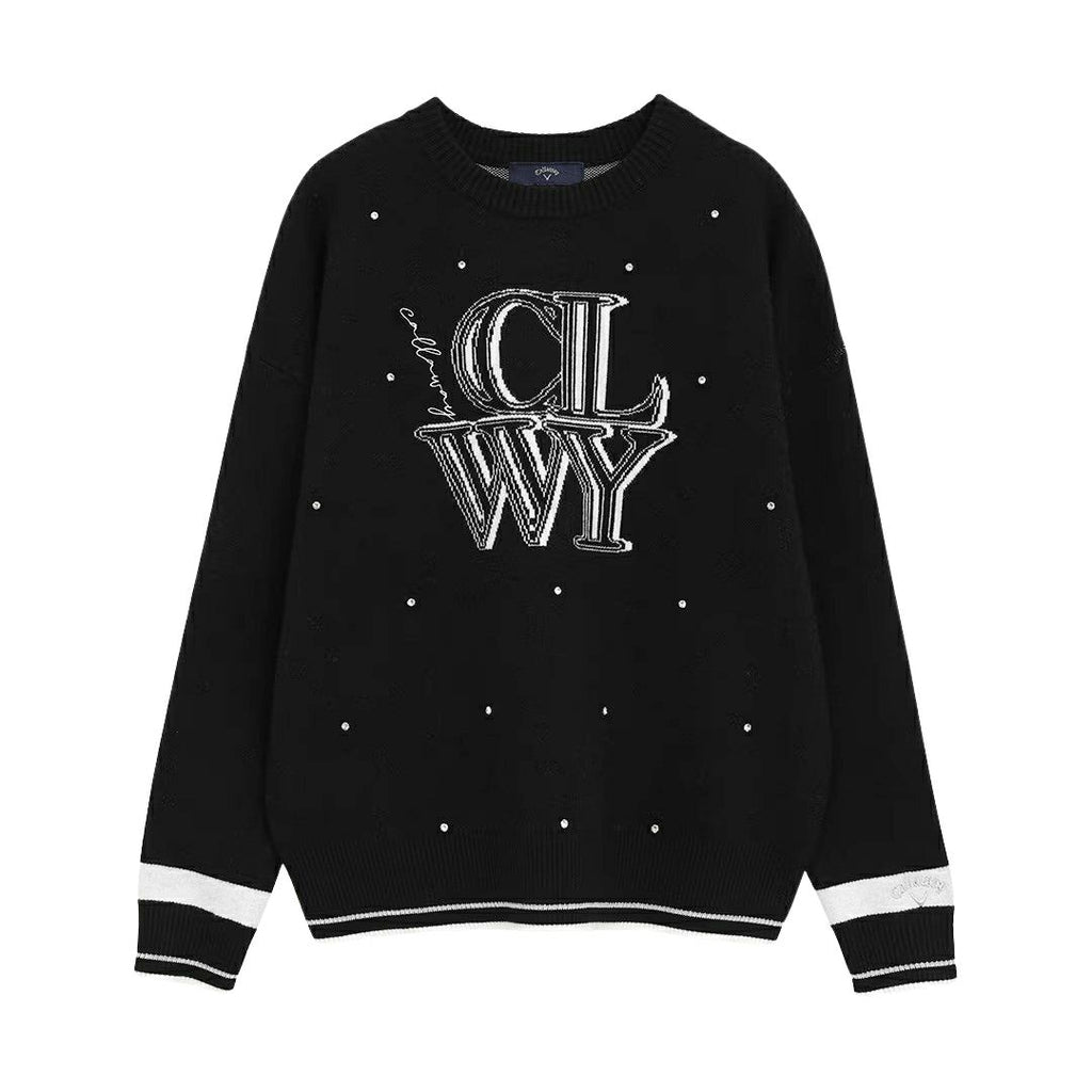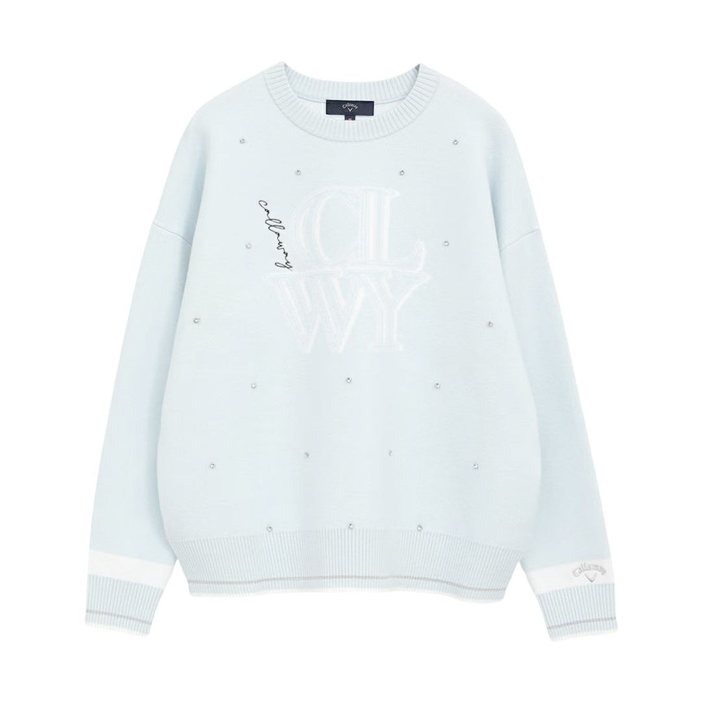 毛衣圆领针织套头衫大徽标提花彩色线条水钻设计高尔夫服装