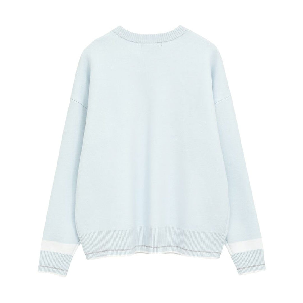 毛衣圆领针织套头衫大徽标提花彩色线条水钻设计上衣