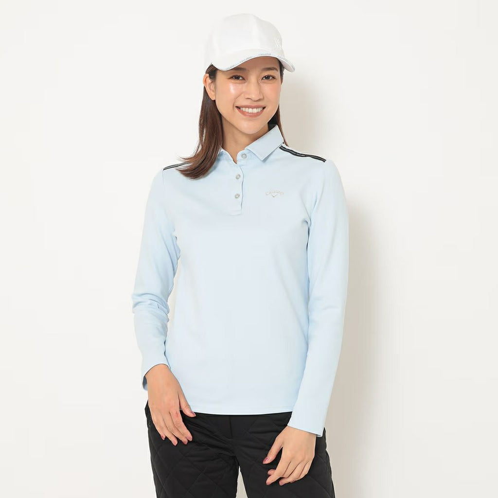 Polo衫长袖防紫外线弹肩标志线设计银色标志刺绣双层针织材质高尔夫服