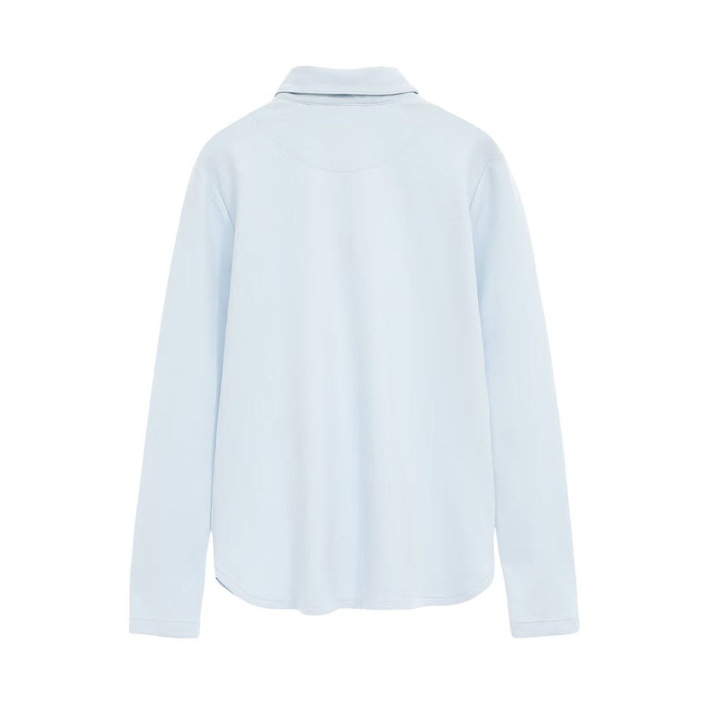 Polo衫长袖防紫外线弹肩标志线设计银色标志刺绣双面针织材质上衣