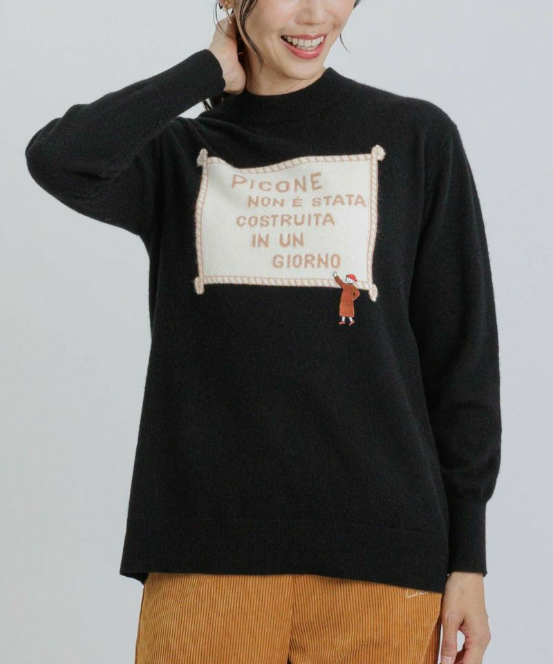毛衣 羊绒衫 高领针织套头衫 100% 羊绒提花插画 微微刺绣贴片 高品质奢华优雅羊绒上衣