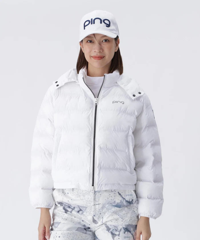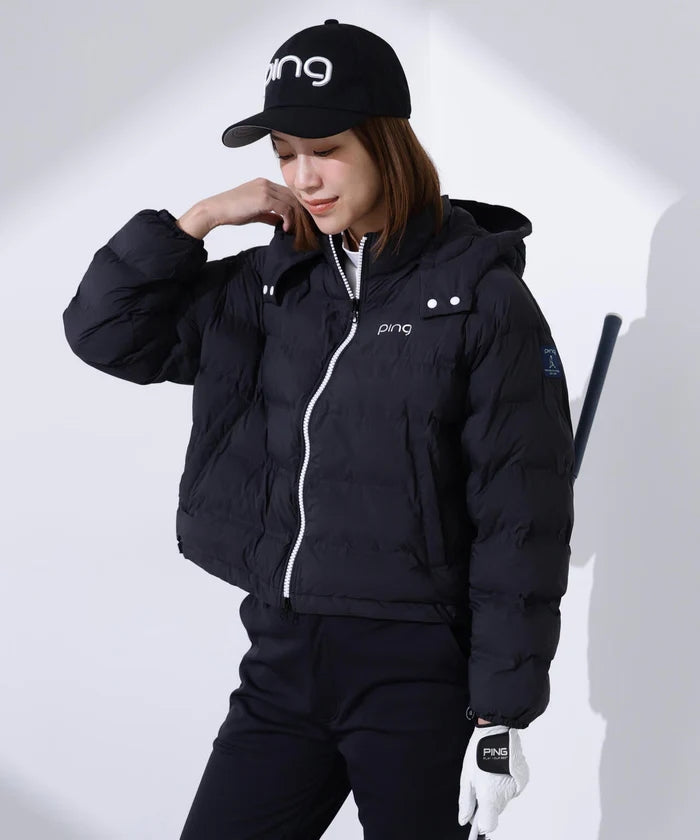 夹克衫,带衬垫,带可拆卸风帽,防水,保暖,防寒,防风,短款夹克衫,素色,山脉图案,徽标印花,高尔夫服