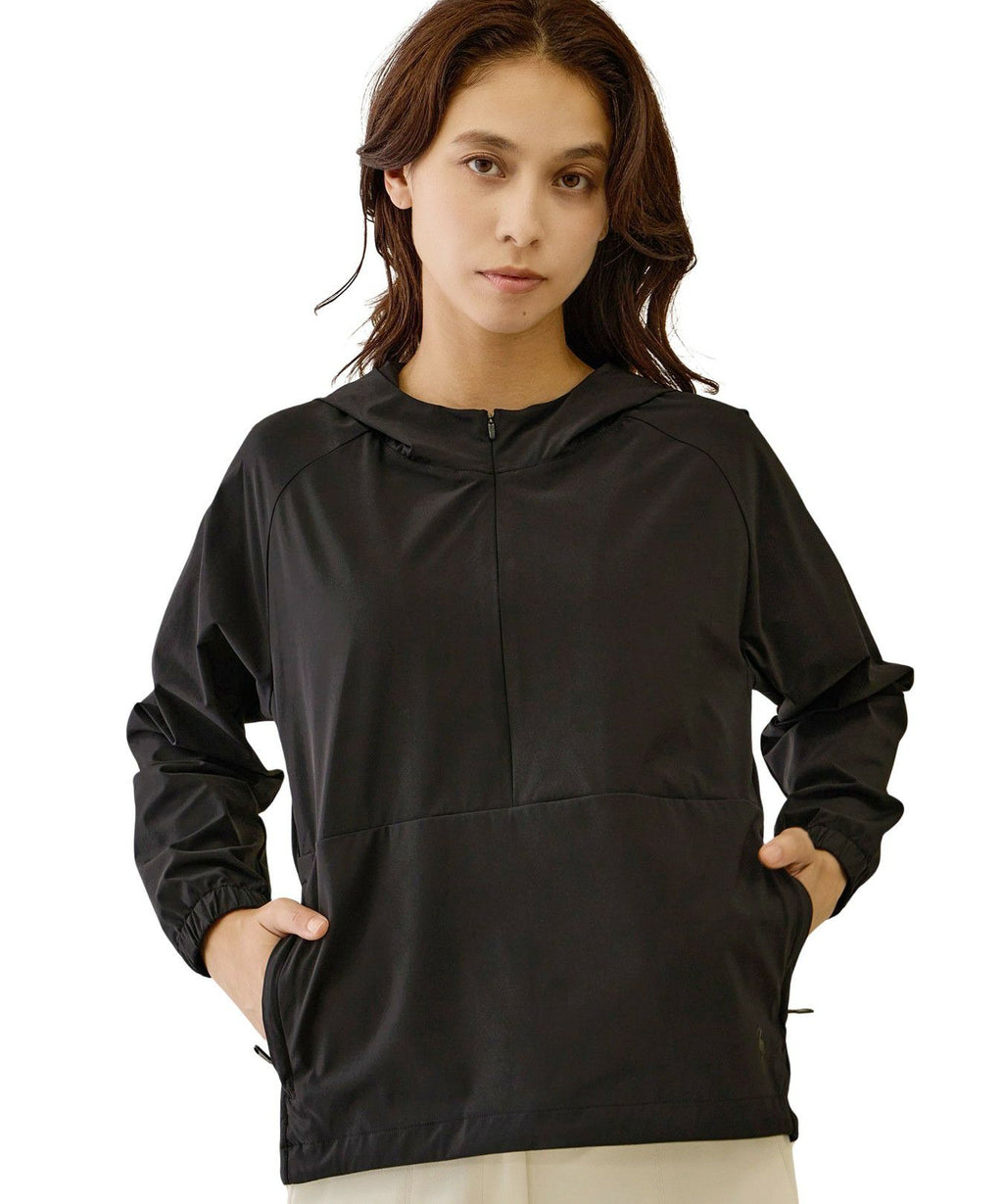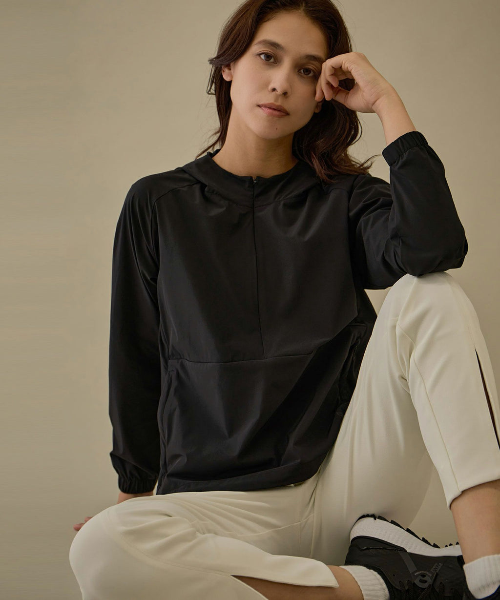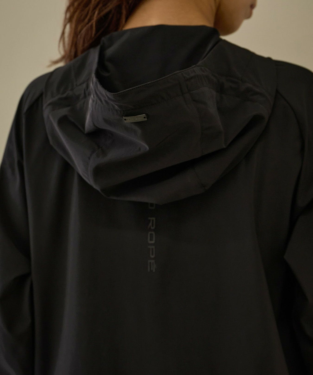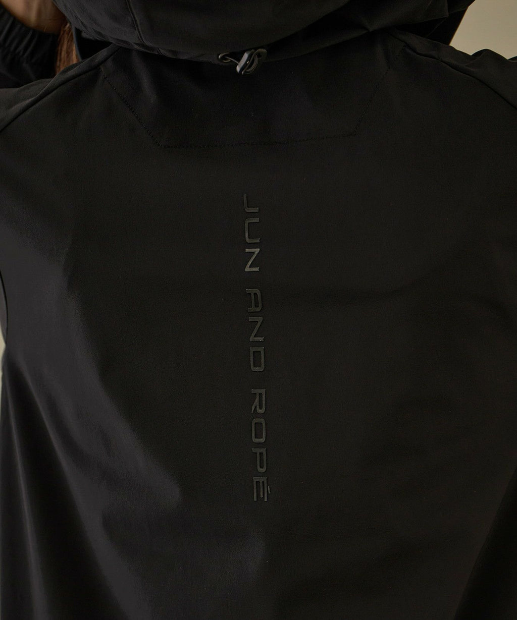 半拉链连帽外套防风外套防水防紫外线接触冷感弹力尼龙材料半喇叭形背部标志印花