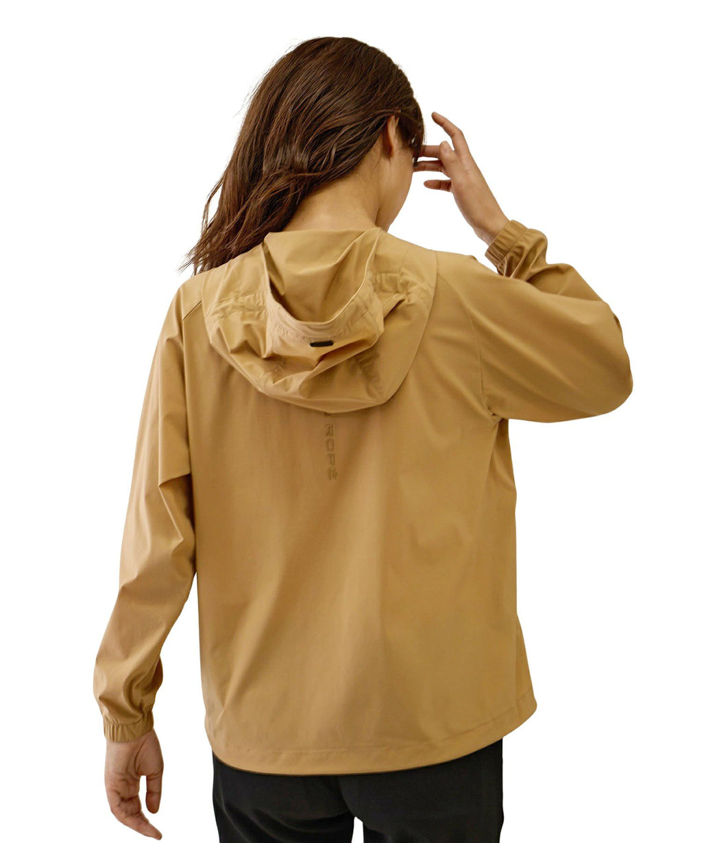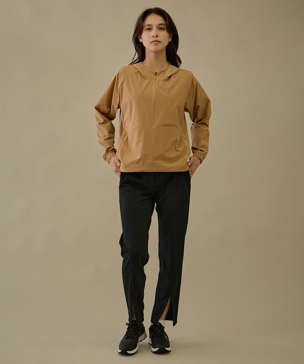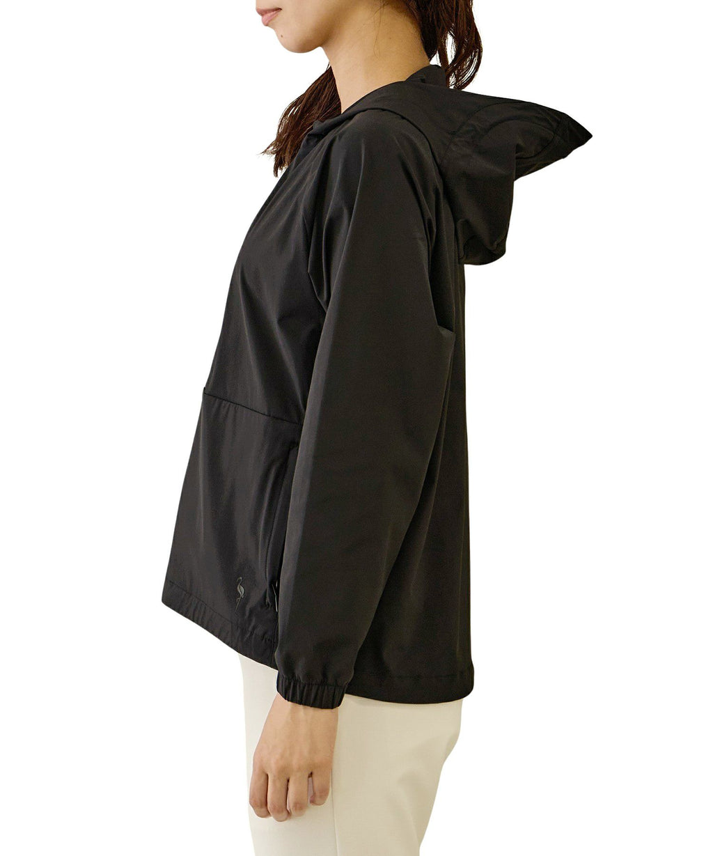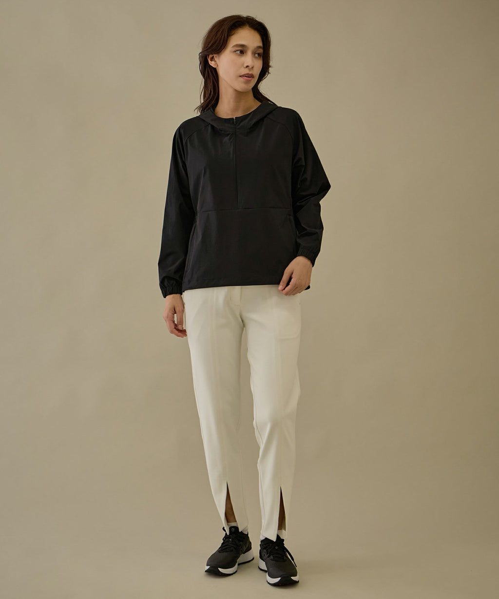半拉链连帽外套防风外套防水防紫外线接触冷感弹力尼龙材料半喇叭形背部标志印花