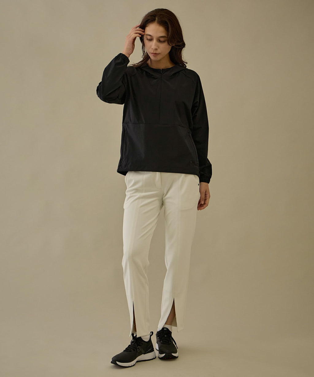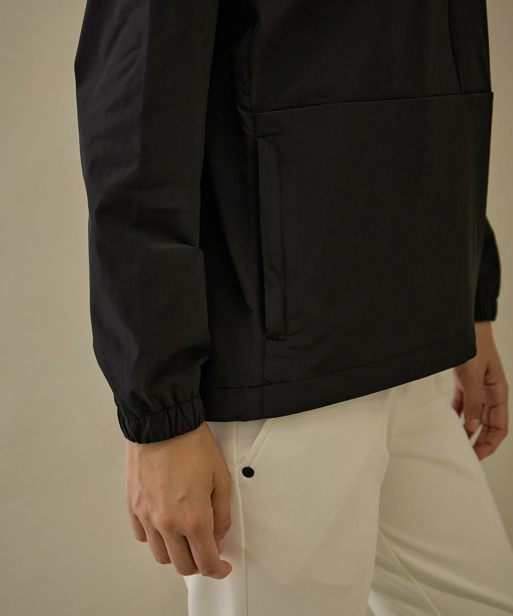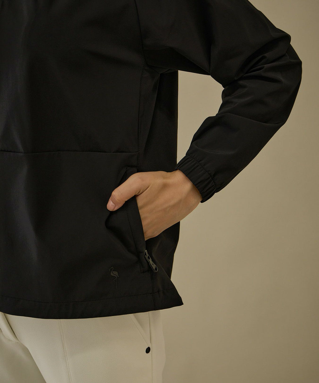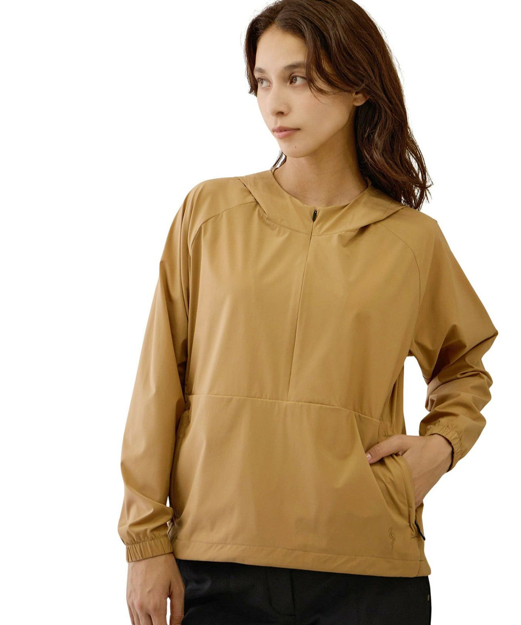 半拉链连帽外套防风夹克防水防紫外线接触冷感弹力尼龙材料半喇叭剪影背部标志印花高尔夫服装