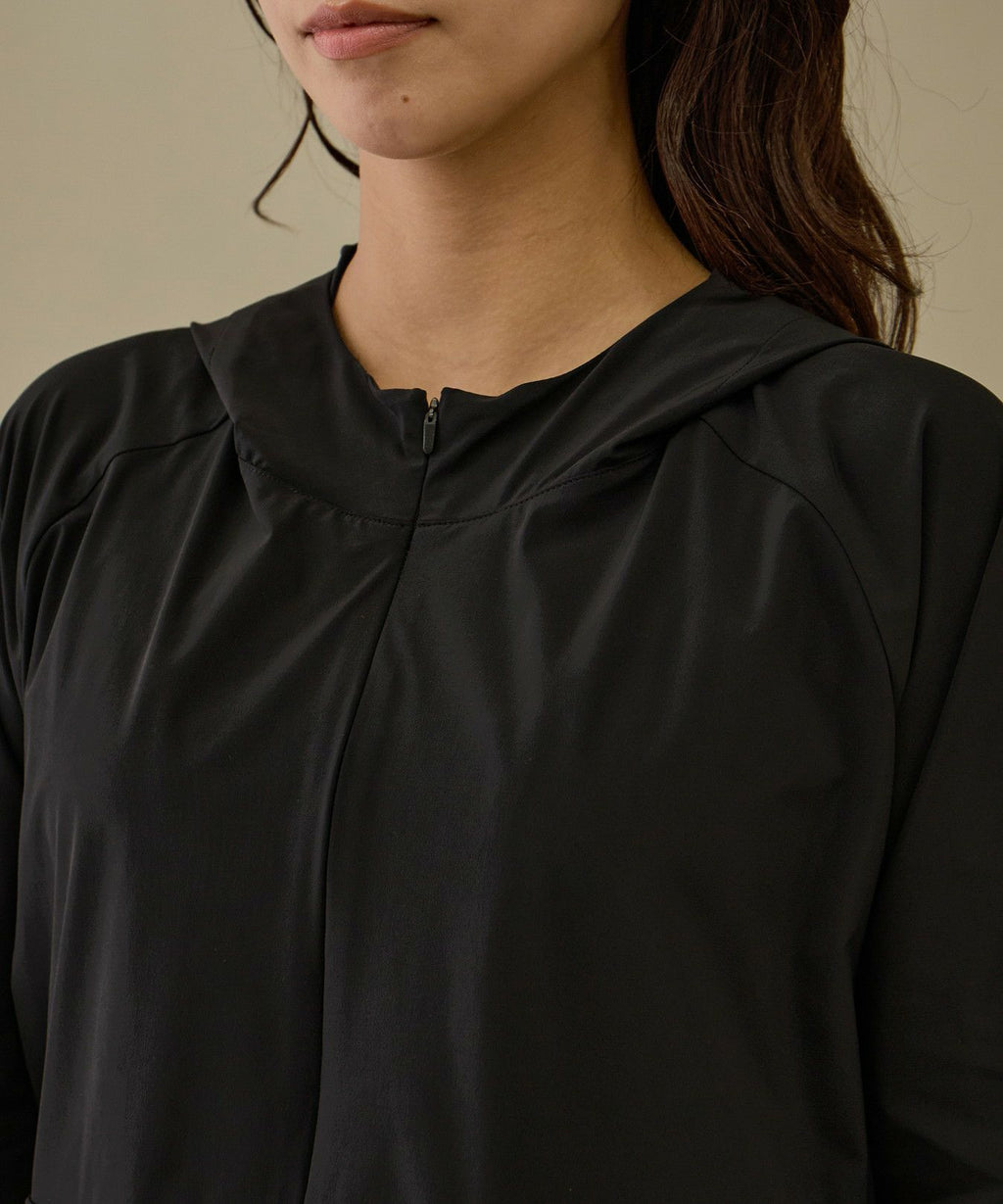 弹性防紫外线防水接触冷感带兜帽带兜帽主轴带半拉链上摆带兜帽主轴带地毯袖子凉爽材料ECOUSE