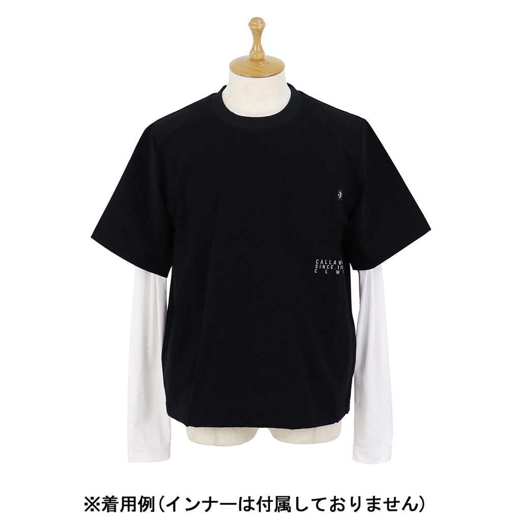 夹克短袖圆领T恤设计弹力防水针孔网状材料高透气套衫夹克下摆泥胸口袋附有标志印花M ~ 3l高尔夫球服