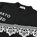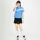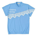 高脖子襯衫,短袖,法式袖子,Dolman設計,Pique材料,蕾絲印花,彈性下擺,模擬脖子