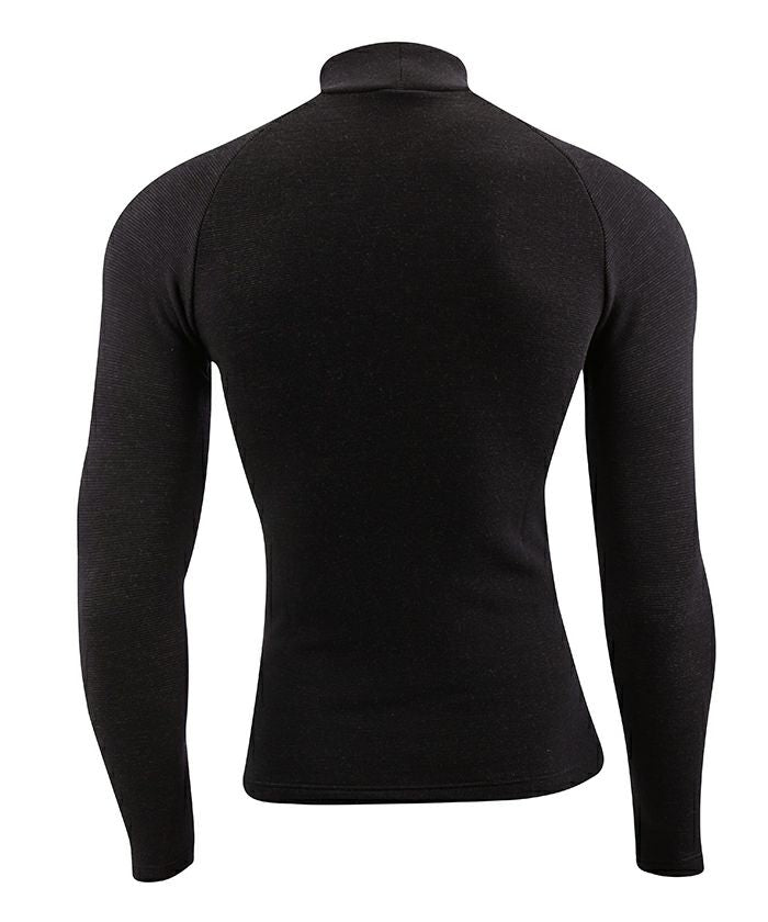 高领衬衫长袖衬衫超精细美利奴羊毛材料吸湿发热保温模拟领口标志刺绣