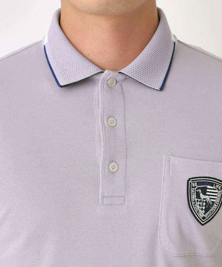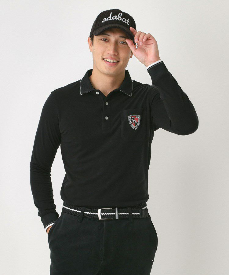 带口袋的罗纹领长袖polo衫,沿袭了经典款式,胸口的徽章刺绣成为重点,给人以干练的印象。