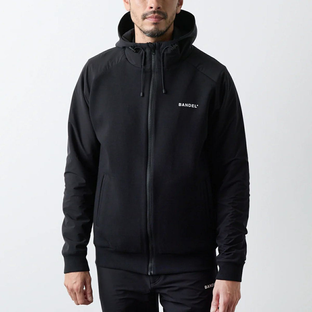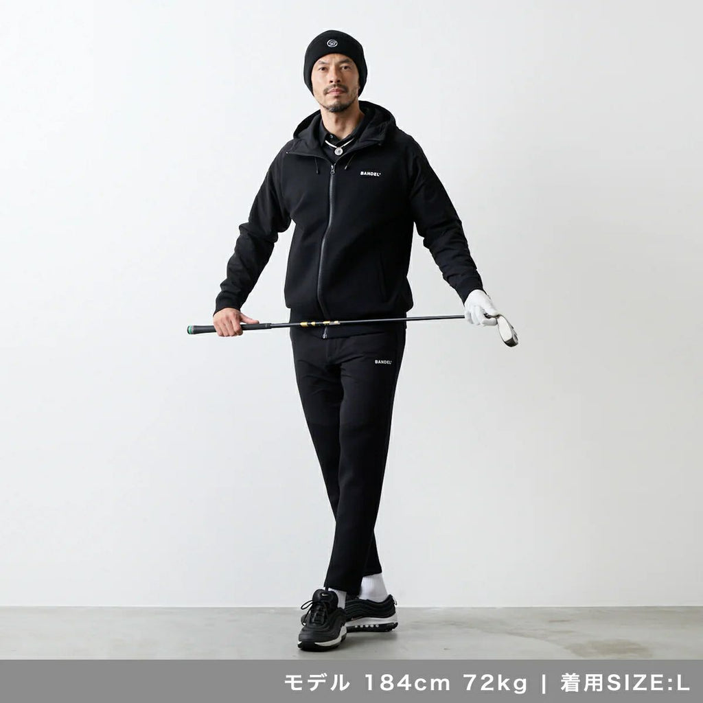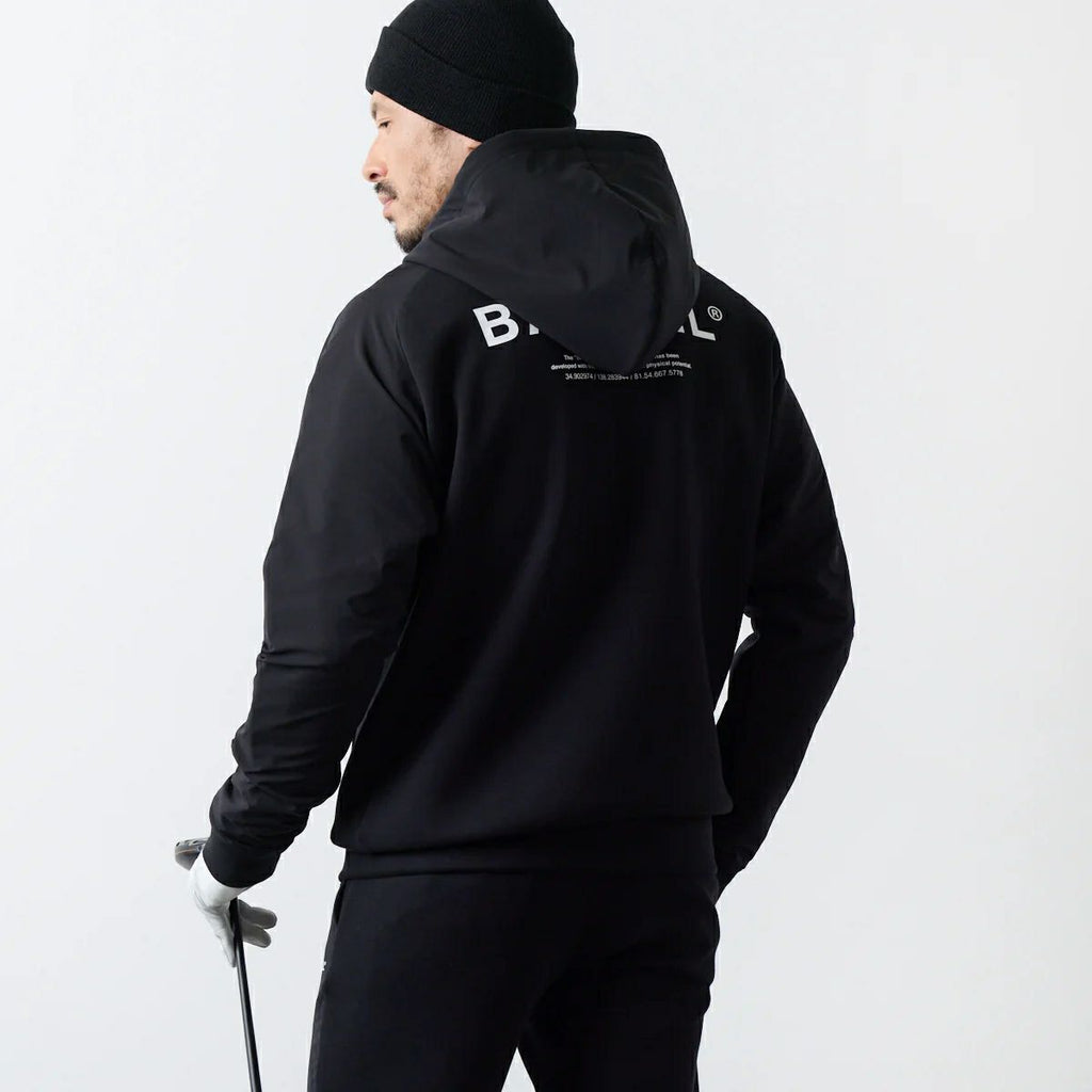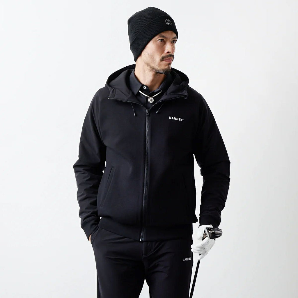 夹克衫连帽弹力棉混纺不同材料切换标志印花高尔夫服装