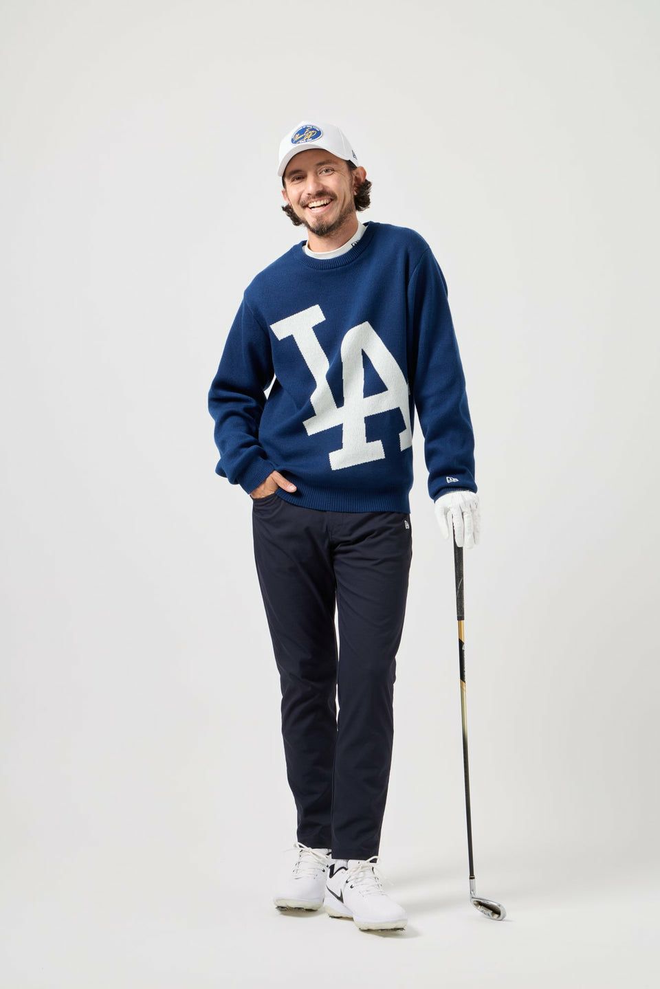 毛衣针织圆领洛杉矶道奇队MLB合作LA徽标牛仔大徽标M ~ 3l可供选择高尔夫服装