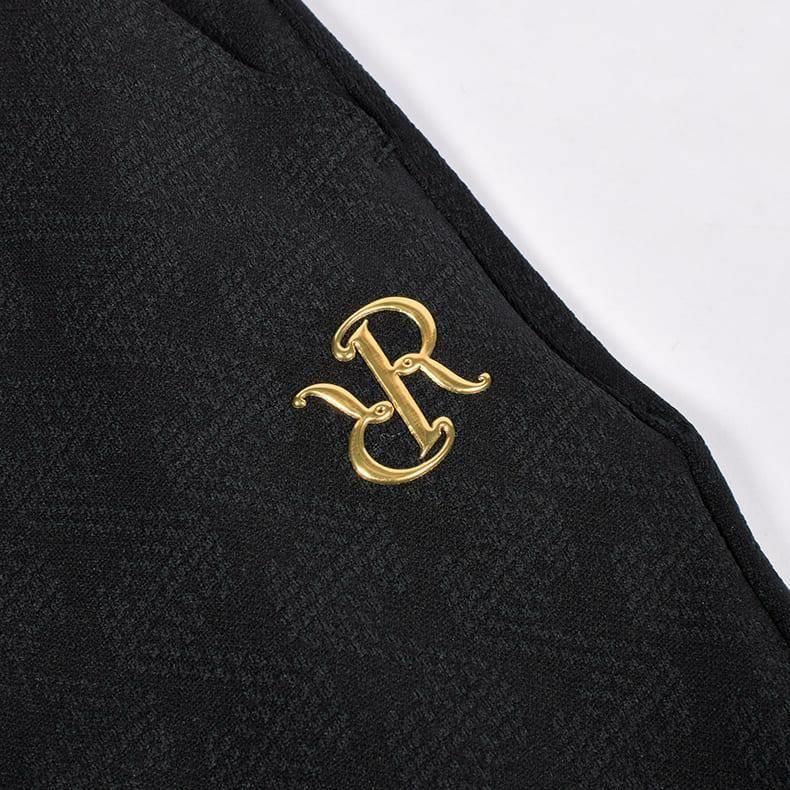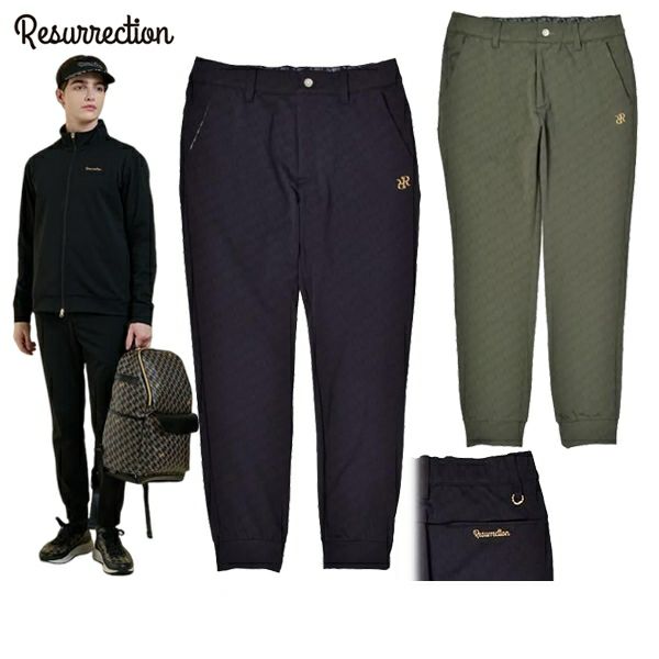 裤子长裤子慢跑裤子弹力腰部伸缩皮革图案提花总图案几何图案金色标志高尔夫球服
