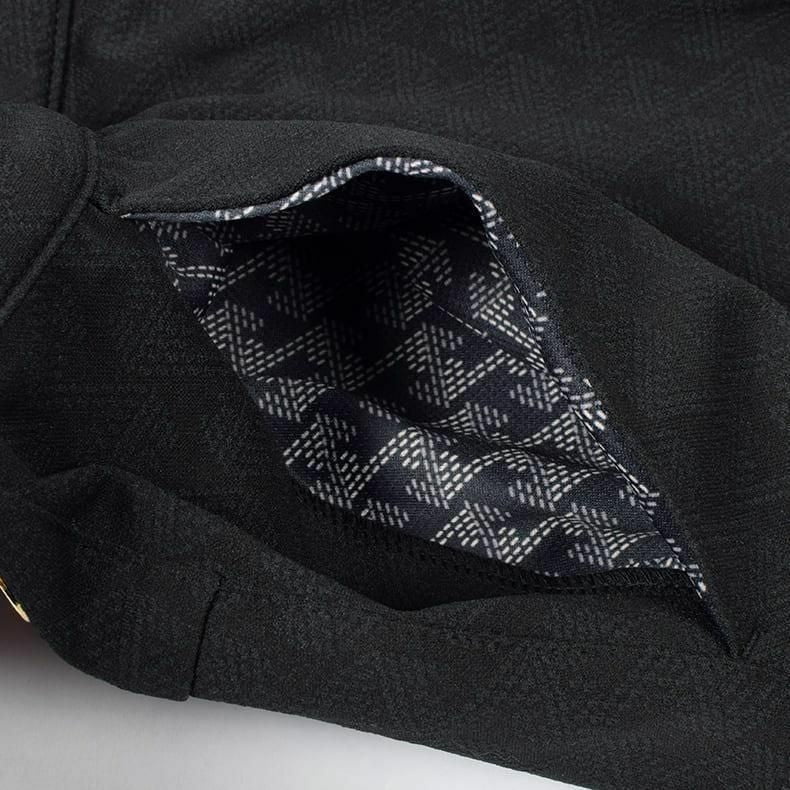 口袋内的布料和腰周围的内侧印着作为反弹力代名词的几何图案。